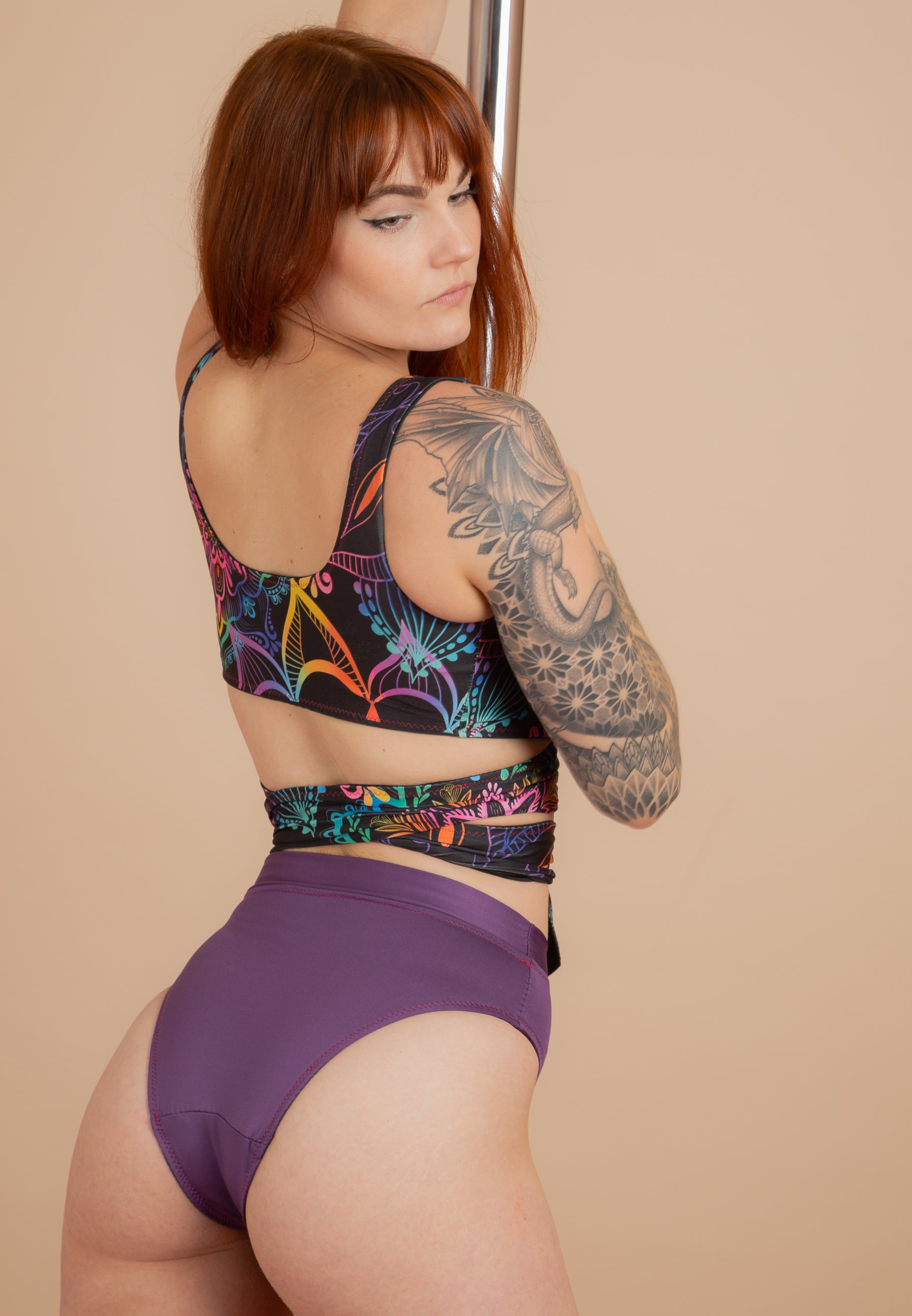 Sexy Set bestehend aus Wicked Top Ranbow und High Waist String in Lila.